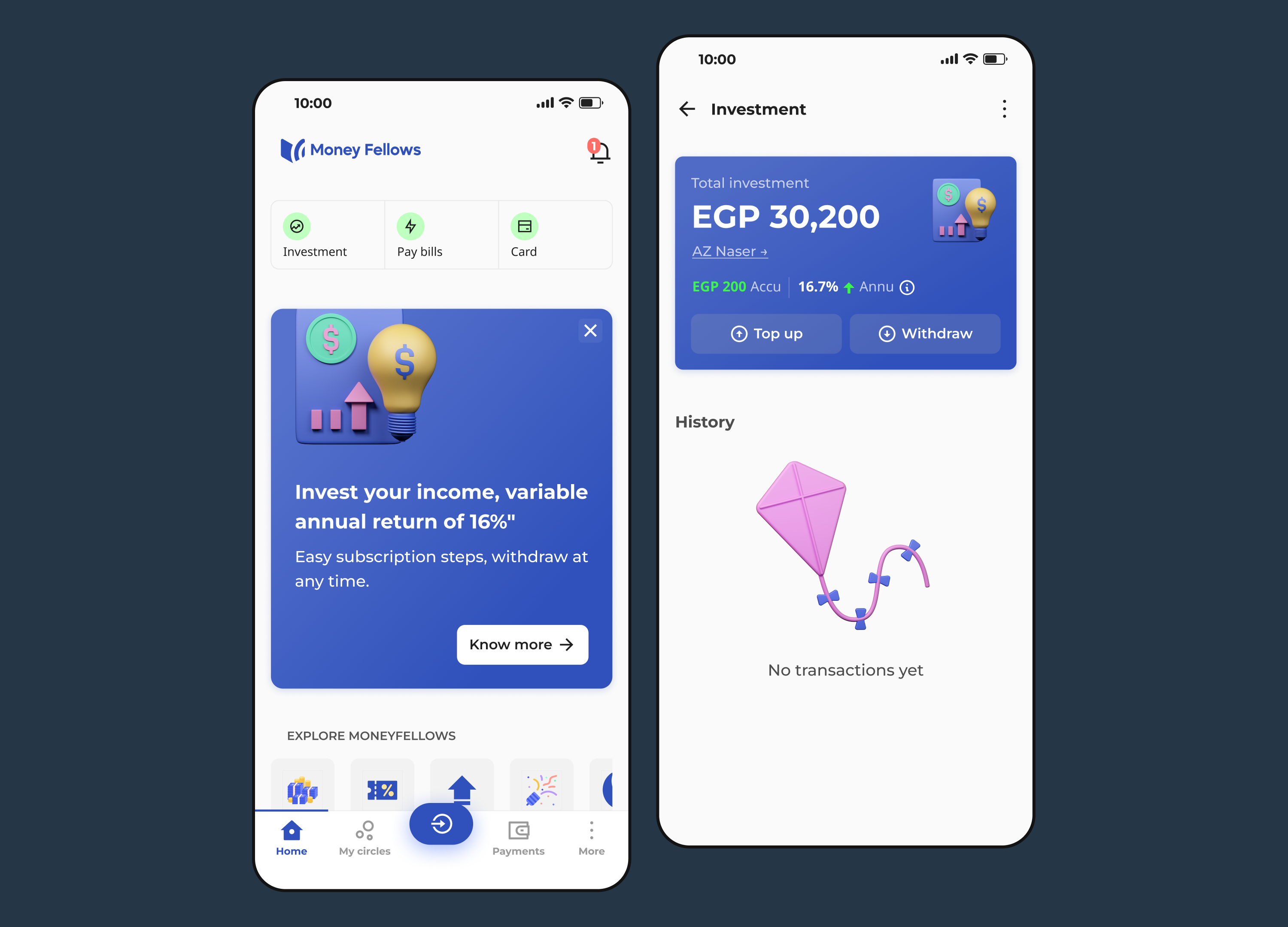 Money Fellows is a digital money circle mobile application that allows users to save money and get access to a lump sum payout ahead of time. It is the largest money circle app in Egypt, with over 4 million users.